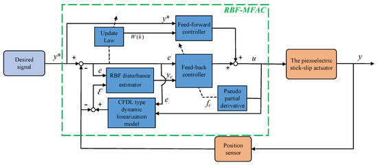By introducing Equation (24) to Equation (23), a new control strategy of the PSSA can be obtained. The control system block diagram of the MFAC algorithm based on the RBFNN estimation is illustrated in Figure 4.