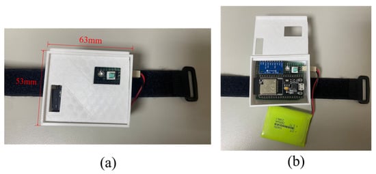 (a) The size of the proposed wearable sensor node; (b) the top view of the sensor node.