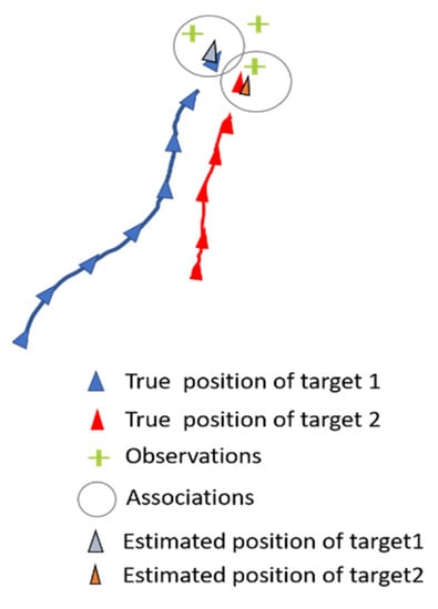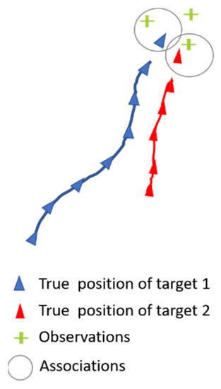 - Reid, D. An algorithm for tracking multiple targets. IEEE Trans. Autom. Control 1979, 24, 843–854. [Google Scholar] [CrossRef]