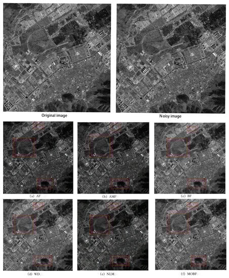 These results validate the feasibility and effectiveness of the MOBF algorithm for denoising remote sensing images. Future research can further explore the algorithm’s applicability in other remote sensing scenarios and focus on enhancing its computational efficiency and practicality to drive advancements in the field of remote sensing image processing.