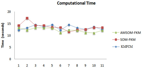 - The proposed AMSOM-FKM technique and existing methods, i.e., Fuzzy-C-means and K-mean (FMFCM), hybrid self-organization mapping-FKM, were implemented over MATLAB and compared based on comparison parameters, i.e., sensitivity, precision, accuracy, and similarity index values;