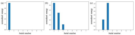 (a) Acoustic emission signal energy characteristic distribution of early damage of the blade. (b) Acoustic emission signal energy characteristic distribution of mid-stage damage of the blade. (c) Acoustic emission signal energy characteristic distribution of late damage of the blade.