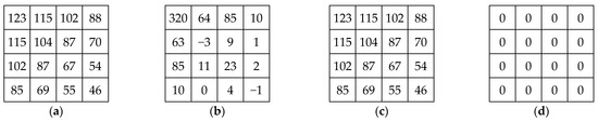 - Xiao, B.; Lu, G.; Zhang, Y.; Li, W.; Wang, G. Lossless image compression based on integer Discrete Tchebichef Transform. Neurocomputing 2016, 214, 587–593. [Google Scholar] [CrossRef]