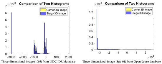 In the following, the histogram-modification-based spatial approach described in [32] has been applied in the IRKT domain for 3D RDH of medical images. The IRKT-based 3D RDH algorithm has the following features: (1) it is an integer-value-to-integer-value mapping in both data embedding and data extraction processes; (2) it exhibits significant potential in terms of high embedding capacity, high additional data imperceptibility, and high robustness against statistical attacks; (3) embedding data into 3D medical images does not increase their original size, thus optimizing infrastructure and maximizing resource utilization in the IoMT; (4) medical images are recovered without any loss or damage after extracting additional information; (5) it is well suited for high-quality 3D medical images; (6) the embedding capacity and quality of the 3D stego image (image after data embedding) can be adjusted using a threshold-based embedding technique; (7) partitioning the 3D carrier image into smaller cuboids offers practical advantages in terms of implementation and algorithm complexity reduction.