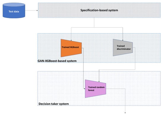 The framework’s second phase comprises two models; the first one is the XGBoost and the second one is the GAN model. Both models are combined to take advantage of each other to reach the ultimate accuracy in detection. The XGBoost model is chosen based on its superior empirical results that were shown in previous versions of the framework [19,20] in the detection of known attacks. Furthermore, XGBoost possesses the capacity to handle outliers effectively and incorporates regularization methods such as L1 and L2 regularization [44]. These regularization techniques serve to mitigate the risk of overfitting to noisy data points that lie outside the typical data distribution. GAN is one of the models that is used for anomaly detection using normal data as the abnormalities can be captured by finding a high reconstruction error between the input data and the predicted data [25].