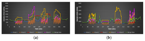 - Taylor, A.; Leblanc, S.; Japkowicz, N. Anomaly Detection in Automobile Control Network Data with Long Short-Term Memory Networks. In Proceedings of the 2016 IEEE International Conference on Data Science and Advanced Analytics (DSAA), Shenzhen, China, 13–16 October 2016; pp. 130–139. [Google Scholar] [CrossRef]