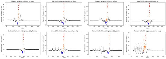 is applied on the data where continuous peaks arise, e.g., when the subject runs or jumps. However, in contrast with KFall, in UR, such actions are not included. Furthermore,