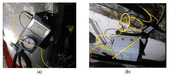 The hydraulic support not only supports the top plate of the working face to provide a safe coal cutting space for the shearer, but also drives the scraper conveyor forward to achieve a continuous and safe advancement of the mining face by completing the four basic actions of lifting, lowering, pushing, and moving [37]. If the hydraulic support exhibits abnormal attitudes, such as tilting, collision, or tilting of the top beam, it will seriously affect the advancement of the working face and the safety of the mining space; therefore, hydraulic support state perception is an important part of intelligent coal mining face construction. The FBG inclination sensor and FBG pressure sensor are used to build a fiber intelligent sensing system for hydraulic support. Based on the hydraulic support attitude perception index and the kinematics model, real-time online perception system of the hydraulic support base and link attitude, working resistance, and top beam attitude is realized (Figure 1). The FBG pressure sensor and the FBG inclination sensor are shown in Figure 3.
