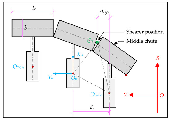 where, Δys denotes the actual distance value between the hydraulic support and the shearer in the Y axis direction. Y(i+2)a denotes the Y axis coordinate value of the No.(i + 2) hydraulic support, (i + 2) denotes the serial number of the hydraulic support. A denotes the local coordinate system of the hydraulic support base.