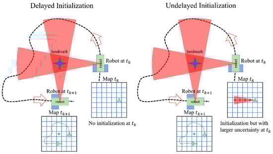 - Joan, S.; Monin, A.; Devy, M.; Lemaire, T. Undelayed initialization in bearing only SLAM. In Proceedings of the 2005 IEEE/RSJ International Conference on Intelligent Robots and Systems, Edmonton, AB, Canada, 2–6 August 2005; pp. 2499–2504. [Google Scholar]