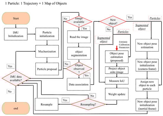 - An object-level tightly coupled IMU/camera fusion is developed. The particle weight update does not require point-to-point data correspondences and relies only on the contour of the segmented object.