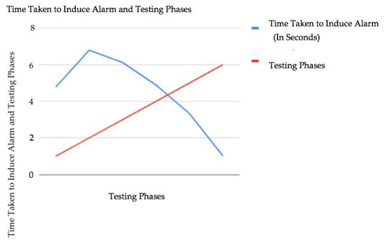 Figure 7. Testing stages and the time taken to induce the device alarm.