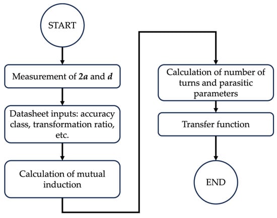 The proposed modeling procedure starts with the geometrical measurements on the RC and ends with the transfer function (TF) that correlates the frequency relation between the output voltage and the input current. The procedure is summarized in the flowchart depicted in Figure 2.