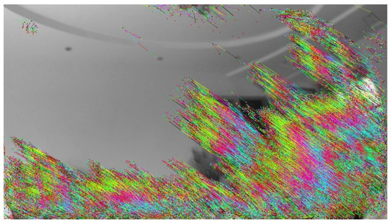 Optical flow refers to the displacement of target pixels in adjacent frame images caused by camera motion. Generally, sparse optical flow processing is faster and more suitable for low-end computing platforms [22]. Compared to sparse optical flow, dense optical flow does not only select image features for calculation but calculates the displacement of all pixels in the image, and performs registration based on the optical flow field, so the effect is better than sparse optical flow.