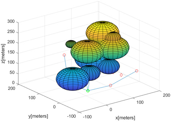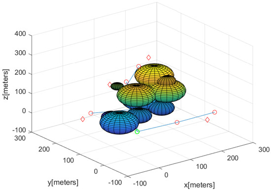Suppose that there are initially N agents at the base. Let define the ith agent (). Let define the 3D location of , where . Let indicate at sample step k. The sampling interval between sample steps k and is seconds.