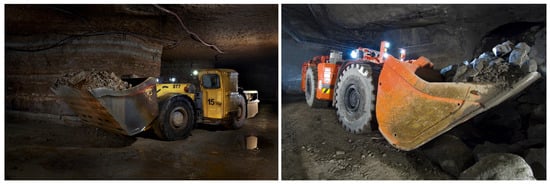 - ΠAO «Γaйский ΓOK». Load Haul Dump Image. 2017. This File Is Licensed under the Creative Commons Attribution-Share Alike 4.0 International License. Available online: https://commons.wikimedia.org/wiki/File:Load_haul_dump_machine.jpg (accessed on 29 August 2023).
