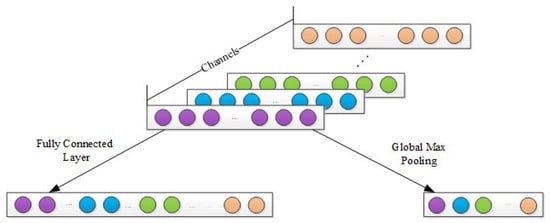 The pooling layer performs a down-sampling operation, which removes redundant features and extracts deeper features. Max pooling and average pooling are the most common pooling operations. Max pooling generally outperforms average pooling for time series classification tasks, which is expressed as follows: