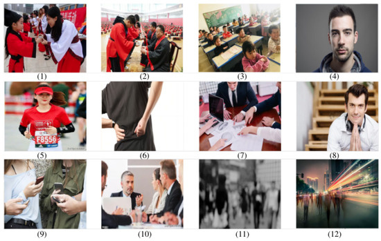 Acquiring a large and diverse dataset of images is essential for effectively training and evaluating machine learning models for detecting common human postures. To facilitate the process, we have gathered all the necessary images from the CHP dataset available on the Internet, which adequately fulfills our requirements, we follow the principles of the PASCAL VOC [73] and COCO [74] datasets in collecting our dataset CHP. Because iconic images may lack important contextual information and non-normative viewpoints, we cleaned and processed the collected images to remove images with non-normative viewpoints. Human postures are classified into bending, standing, sitting, lying, squatting, running, and going, considering their prevalence, usefulness for practical applications, and ease of image collection. See Figure 2 for sample images of our dataset. Figure 3 shows images that are not suitable for this type of task, all of which are broadly representative. It is evident that while all of these images have distinct human features, the posture features are either overlapping, or severely missing, or blurred. For example, both images (1) and (2) in Figure 3 suffer from overlapping posture features. Images (3) through (10) are characterized by missing posture features. Although the legs are out-of-view in image (5), we can infer that the person is running. The images (11) and (12) have the problem of blurred and missing features. In general, we filter out the images that we are unable to infer the posture of the persons without ambiguity.