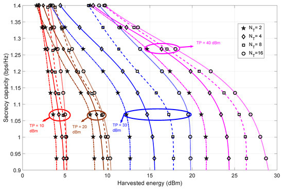 4.1. Performance Analysis Based on Trade-Off between Harvested Energy and Secrecy Capacity