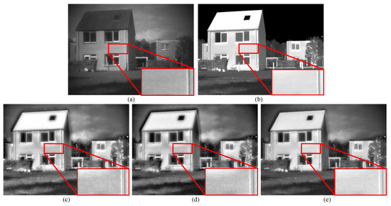 For a qualitative illustration of the combined effect of deep learning and conventional methods, Figure 11 presents a comparison among the results of using only our proposed deep learning network, only conventional methods, and our proposed framework. As observed in the figure, the fusion outcome from using only deep learning appears generally darker, failing to effectively preserve the features of the thermal targets and lacking in detail richness. The fusion result obtained solely from conventional methods loses the texture of the roof. However, our proposed method not only retains the features of thermal targets but also preserves a greater amount of texture. This demonstrates that the deep learning network we propose, combined with our conventional method-based detail-level fusion strategy, is better suited for complementary utilization.