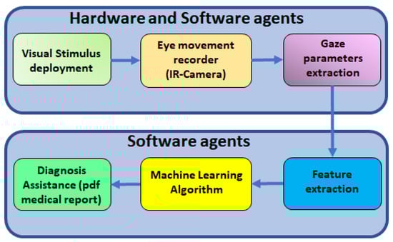 Due to technological advances, the measurements of eye movements and the objective quantification of some potential alterations arise as a rich source of information to improve diagnosis [,,,,,,,]. In spite of this, the available technology is not suitable for clinical practice because the results are difficult to understand, requiring time-consuming interventions of scarce experts as they are not related directly to a particular behavior of the brain disease. This limits the use of eye movement in research environments and decreases its implementation in routine clinical practice.