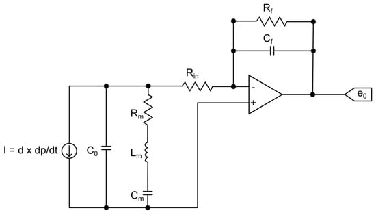 The modeling of the entire measuring chain in equivalent electronic circuits, that is, the modeling of piezoelectric transducers and charge amplifiers, provides a better understanding of the electrical characteristics of piezoelectric transducers. Therefore, it is essential for the design of measurement systems based on piezoelectric sensors [18].