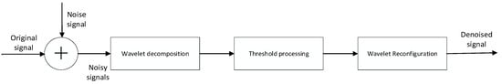 Wavelet thresholding denoising is a denoising method introduced by Donoho et al. []. The denoising process can be divided into three main steps, as depicted in Figure 2:
