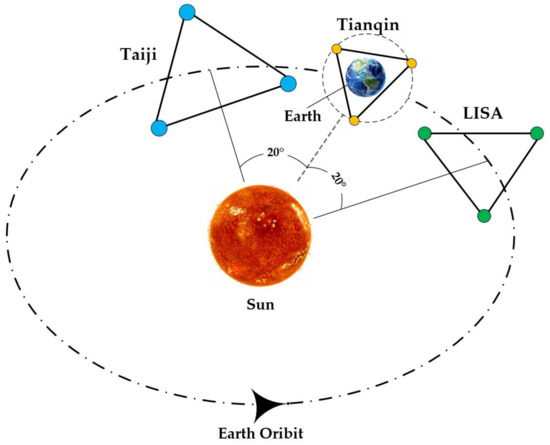 At the same time, China’s space gravitational wave detection missions Taiji and TianQin are also gradually taking shape, carrying out research on space gravitational wave detection in different ways [17,18], as shown in Figure 1.