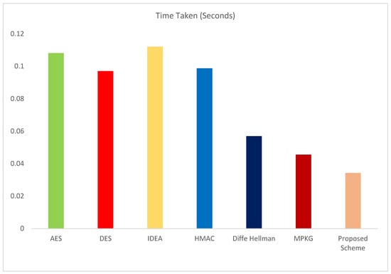 The time complexities of various schemes are evaluated and compared with each other, as shown in Table 4 and Figure 8.