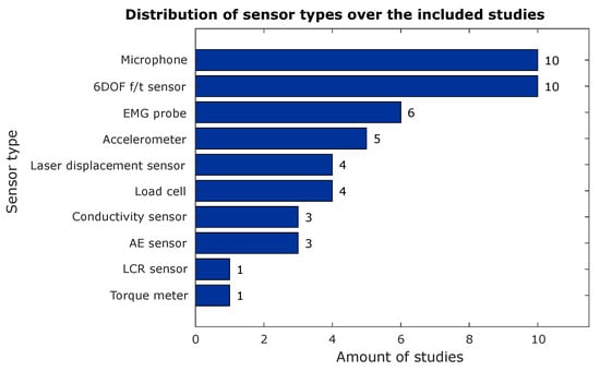 From each study, the following information is extracted: authors, year of publication, sensor type and measured feature, sensing method, surgical procedure, tissue type (bone, soft tissue…), tissue origin (human, animal, artificial…), data analysis and decision-making procedure, accuracy, whether or not the sensor was used in combination with a robotic system, and finally, the possibility of real-time sensing. The primary outcome measures were the sensor type and sensing method. The secondary outcome measures were the decision-making procedure and the accuracy. For the goal of the sensing method or its use in surgery, often the following expressions were used: ‘tissue discrimination’ and ‘drilling/milling state identification’. In this review, we consider this as the same goal since the drilling or milling state during surgery mainly depends on the type of tissue.
