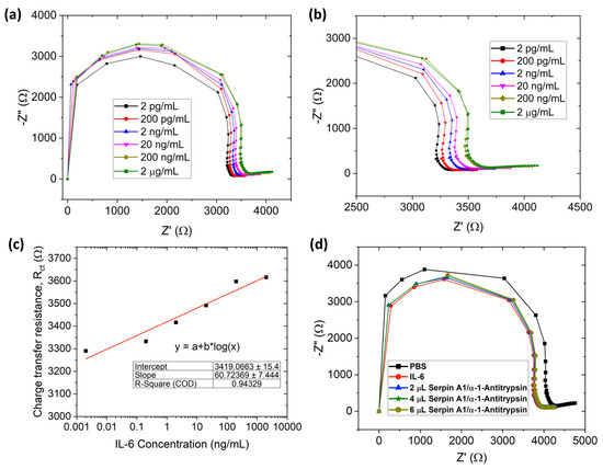 - Bogomolova, A.; Komarova, E.; Reber, K.; Gerasimov, T.; Yavuz, O.; Bhatt, S.; Aldissi, M. Challenges of electrochemical impedance spectroscopy in protein biosensing. Anal. Chem. 2009, 81, 3944–3949. [Google Scholar] [CrossRef] [PubMed]