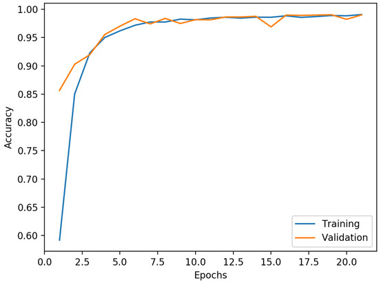 Firstly, the high training accuracy of 99.97% indicates that the neural network was able to learn and fit the training data effectively. This suggests that the model has sufficient capacity and can capture intricate patterns in the training dataset. However, the validation accuracy of 99.47% was slightly lower than the training accuracy, indicating some degree of overfitting. The model might be too complex for the available data, leading to limited generalization to unseen data. Collecting a larger and more diverse dataset that encompasses various environmental conditions and participant demographics could improve the model’s generalization performance.