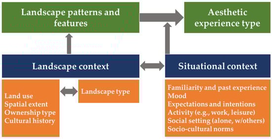 Abstracted model of interactions taking place between the landscape context and the situational context towards the emergence of landscape aesthetic experience. The figure has been created according to [128].