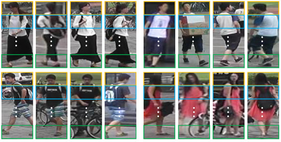 - Kalayeh, M.M.; Basaran, E.; Gökmen, M.; Kamasak, M.E.; Shah, M. Human Semantic Parsing for Person Re-Identification. In Proceedings of the IEEE/CVF Conference on Computer Vision and Pattern Recognition (CVPR), Salt Lake City, UT, USA, 18–22 June 2018; pp. 1062–1071. [Google Scholar]