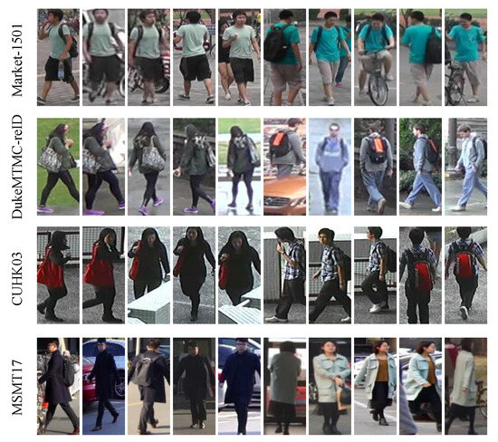 Market-1501 [57] contains 32,668 images of 1501 identities. According to the database setting, the training set consists of 12,936 images with 751 identities. The test set consists of 19,732 images with 750 identities.