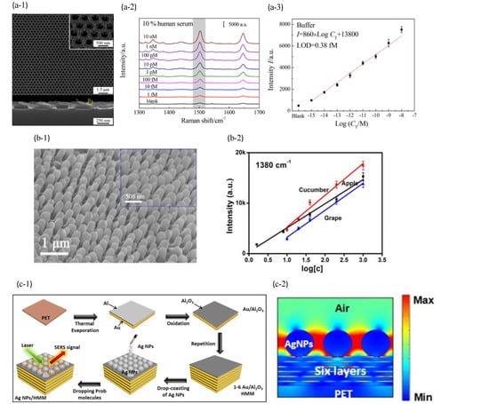- Wang, K.; Sun, D.W.; Pu, H.; Wei, Q. Shell thickness-dependent Au@ Ag nanoparticles aggregates for high-performance SERS applications. Talanta 2019, 195, 506–515. [Google Scholar] [CrossRef] [PubMed]