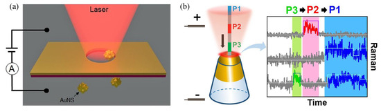 - Li, C.Y.; Duan, S.; Yi, J.; Wang, C.; Radjenovic, P.M.; Tian, Z.Q.; Li, J.F. Real-time detection of single-molecule reaction by plasmon-enhanced spectroscopy. Sci. Adv. 2020, 6, eaba6012. [Google Scholar] [CrossRef]