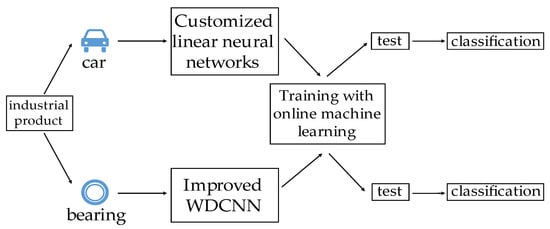 Considering the aforementioned factors, numerous contemporary algorithms demonstrate an almost perfect recognition accuracy of nearly 100% on both the car evaluation dataset employed in vehicle quality detection and the CWRU dataset utilized in bearing fault classification. Therefore, it is imperative to shift our focus towards the practical implementation of these methods rather than solely pursuing the improvement of the algorithm [17,18]. Consequently, we have resolved to evaluate the industrial product quality through online machine learning, which can efficiently detect real-time issues while being better suited for actual environments. The primary contributions of this paper are as follows: