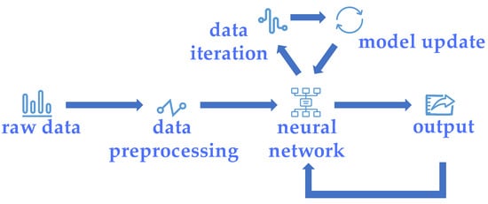 In Formulas (1) and (2), represents the loss function, and represents the gradient. By adjusting the loss value and the change in the gradient in a timely manner, the learning model can be promptly updated upon receiving new data during the training process. This fundamental distinction distinguishes online learning from offline learning. The advantage of online machine learning lies in its ability to automatically update the model with feedback data, eliminating the need for manual adjustments after training. By incorporating real-time feedback data, online learning can dynamically adjust the model and can enhance prediction accuracy. Figure 2 illustrates the flow chart of online machine learning.
