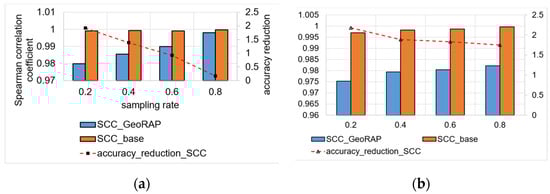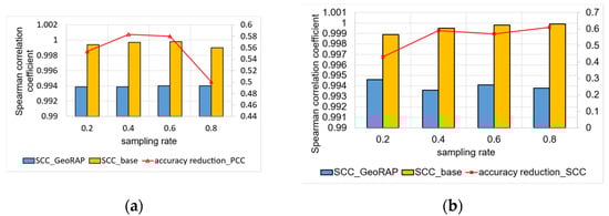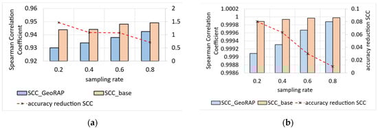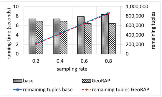 Figure 14 also shows the remaining tuples after reduction, which is very tiny and explains the insignificant loss in the accuracy discussed previously. On the other hand, we obtain a reduction in the running time at an average of roughly 13.5, while the reduction in the corresponding number of tuples is roughly 2.2, on average, which is insignificant as a trade-off for the significant reduction in the running time. This has an impact on the overall performance of the system for very big geospatial data approximate query processing.