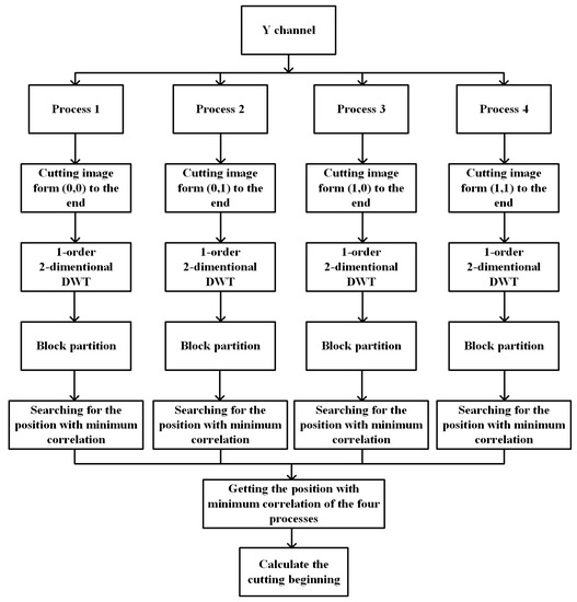 Step 2.1: Take the Y component of the image ; by ergodically searching to find the position with maximal MSE, we obtain the cutting position. The detailed method is given in Section 2.
