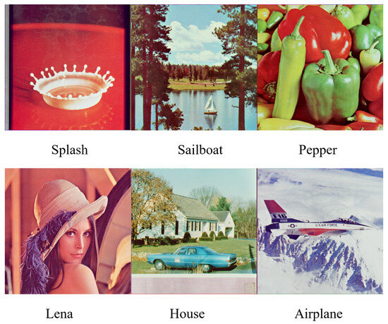 The color images of size in Figure 7 are selected as the host images to compare the performance of our watermarking scheme with others. To show the superiority of our scaling factor detection network, we test the ability to detect scaling factors on the datasets of RAISE [30], Boss [29], and Dresden [31]. What is more, we randomly select 100 images each from these photo databases to test the scheme performance on large color images which correspond to real-world situations. In order to show the superiority of the proposed scheme, we also compare with nine existing schemes, including seven transform-domain-based methods and two deep-learning-based methods. The seven transform-domain-based methods are as follows: (1) Ernawan and Ariatmanto’s DWT-DCT-based method [33]; (2) Wang et al.’s discrete Hartley-transform-based scheme [16], which mainly uses the image geometric features such as sides and angles to correct the attacked image; (3) Wang et al.’s robust periodic blind watermarking scheme [17] based on sub-block mapping and block encryption to enhance robustness under combined attack; (4) Kamili et al.’s two-channel method [6], which embeds robust and fragile watermarks into Y and Cb channels, respectively; (5) Wang et al.’s [34] PDTDFB magnitude and relative-phase-modeling-based method; (6) Yang et al.’s undecimated discrete wavelet-transform-domain-based method [35]; and (7) Wang et al.’s polar-harmonic-transform-based method [36]. The two deep-learning-based methods are: (1) Kumari et al.’s hybrid watermarking scheme based on DWT and SVD in addition to a deep belief neural network [25] and (2) Singh and Singh’s deep-learning-based watermarking algorithm [26].