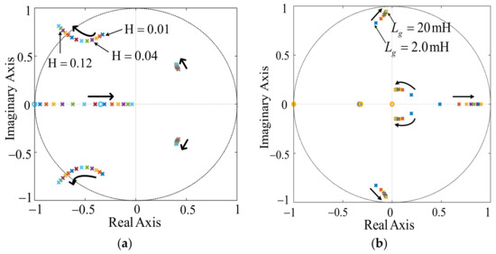 For analysis simplicity, only the case H > 0 is studied in this paper. From Table 2, it is observed that the system has no RHP poles when H < H3, whereas there are two RHP poles when H > H3. Therefore, H3 is the critical value and the critical frequency fcrit = fs/3 can be solved when H3 = 0, which just matches the critical frequency fcrit (a = −1) in the analysis of virtual resistance in the previous section. It is concluded that the condition of the system applying the feedback link Gh(z) = H(z − 1)/(z + 1) with no RHP poles is fr’ < fcrit; in other words, Req(ω) is positive at the frequency below fcrit.