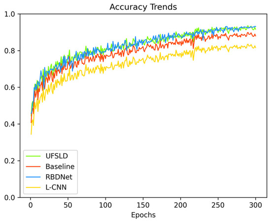 Table 5, it is evident that the algorithm presented in this paper achieved the highest accuracy and precision. UFSLD and L-CNN follow closely in terms of performance. In regard to detection speed, both the algorithm in this paper and UFSLD can meet real-time requirements, while L-CNN can meet quasi-real-time requirements. The remaining two methods exhibited relatively poor accuracy and precision, coupled with slower speeds, which limit their practical applicability. The accuracy of different algorithms is shown in