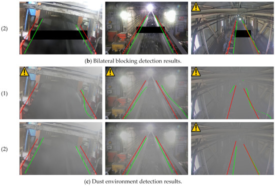 In abnormal situations, this paper still shows a more accurate detection effect, such as in the case of the belt area shelter and excessive dust.