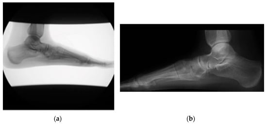- Lauder, J.; Harris, J.; Layton, B.; Heire, P.; Sorani, A.; DeSancha, M.; Davison, A.K.; Sammut-Powell, C.; Lindner, C. A fully automatic system to assess foot collapse on lateral weight-bearing foot radiographs: A pilot study. Comput. Methods Programs Biomed. 2022, 213, 106507. [Google Scholar] [CrossRef]