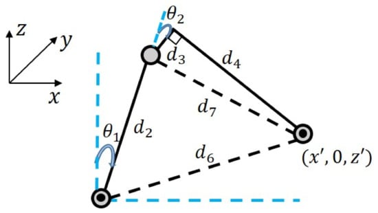 As all joints without are moved in the y-axis, the gripper’s roll is the same with . Now that we know , , and , we can obtain with following equation: