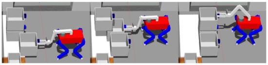 Although this work successively reaches the goal of developing a framework to organize household objects with a quadruped robot, it is essential to acknowledge that these accomplishments were obtained exclusively within a simulation environment without tasks executed on uneven terrains, a significant advantage inherent to quadruped robots. Furthermore, the experiment required only mobile manipulation skills without Human–Robot Interaction (HRI) required for the robots used in ordinary places.