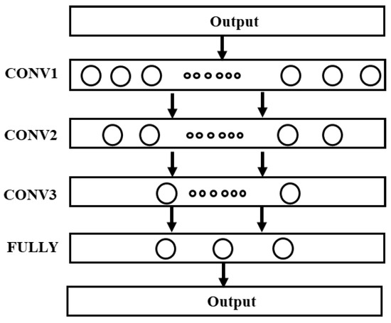 The prediction module is constructed by a full convolution neural network, which reduces the number of training parameters using the weight sharing and local connection characteristics of the convolution layer. Increasing the number of layers of the network can improve the nonlinear mapping ability. Thus, the multilayer CNN is used as the prediction model for experimental verification. The structure of the model is shown in Figure 3. The model has three network layers, and the last layer is the full connection layer, which is used to output the life prediction value . Finally, the weighted smoothing method is used to smooth the prediction results.