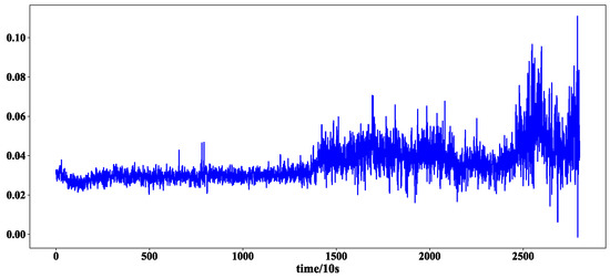 After the training of the feature extraction model, 320 feature sequences of bearing 2_3 were obtained. Two feature sequences were randomly selected to show the effect of feature extraction. The first and 320 feature sequences selected are shown in Figure 7 and Figure 8.